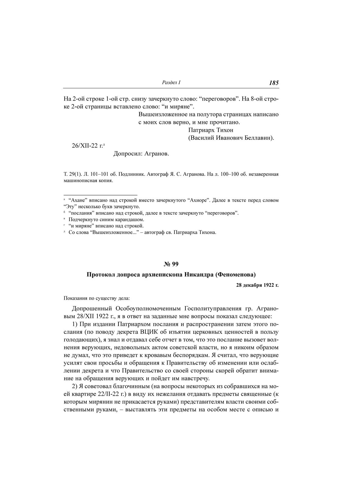 Протокол допроса архиепископа Никандра (Феноменова), 28 декабря 1922 г.