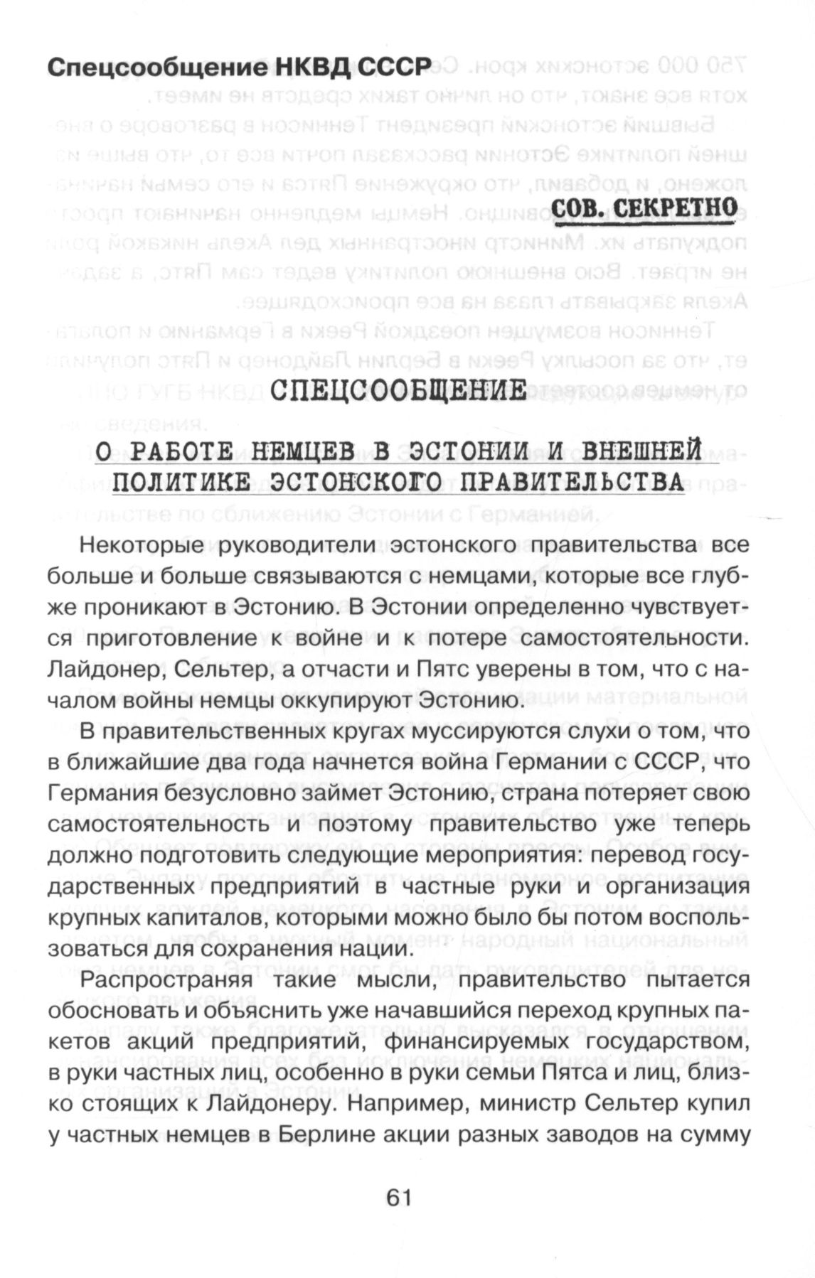 Спецсообщение НКВД СССР. О работе немцев в Эстонии и внешней политике эстонского правительства. 1936 г.