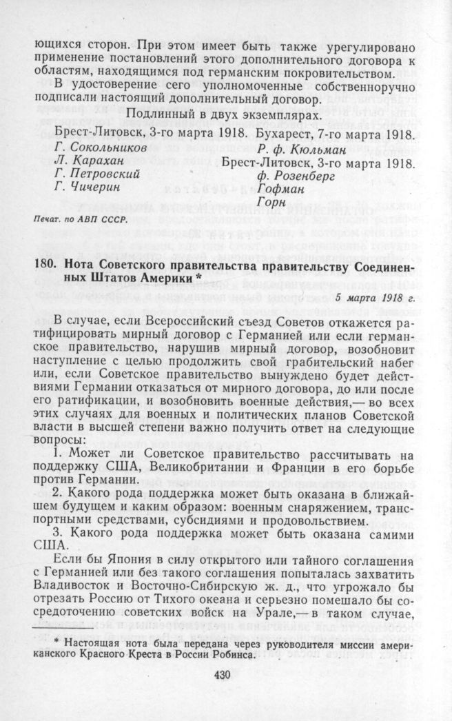 Нота советского правительства правительству Соединенных Штатов Америки. 5 марта 1918 г.