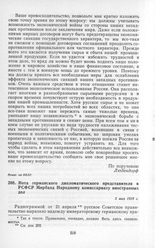 Нота германского дипломатического представителя в РСФСР Мирбаха Народному комиссариату иностранных дел. 3 мая 1918 г. // Печат. по АВП СССР.