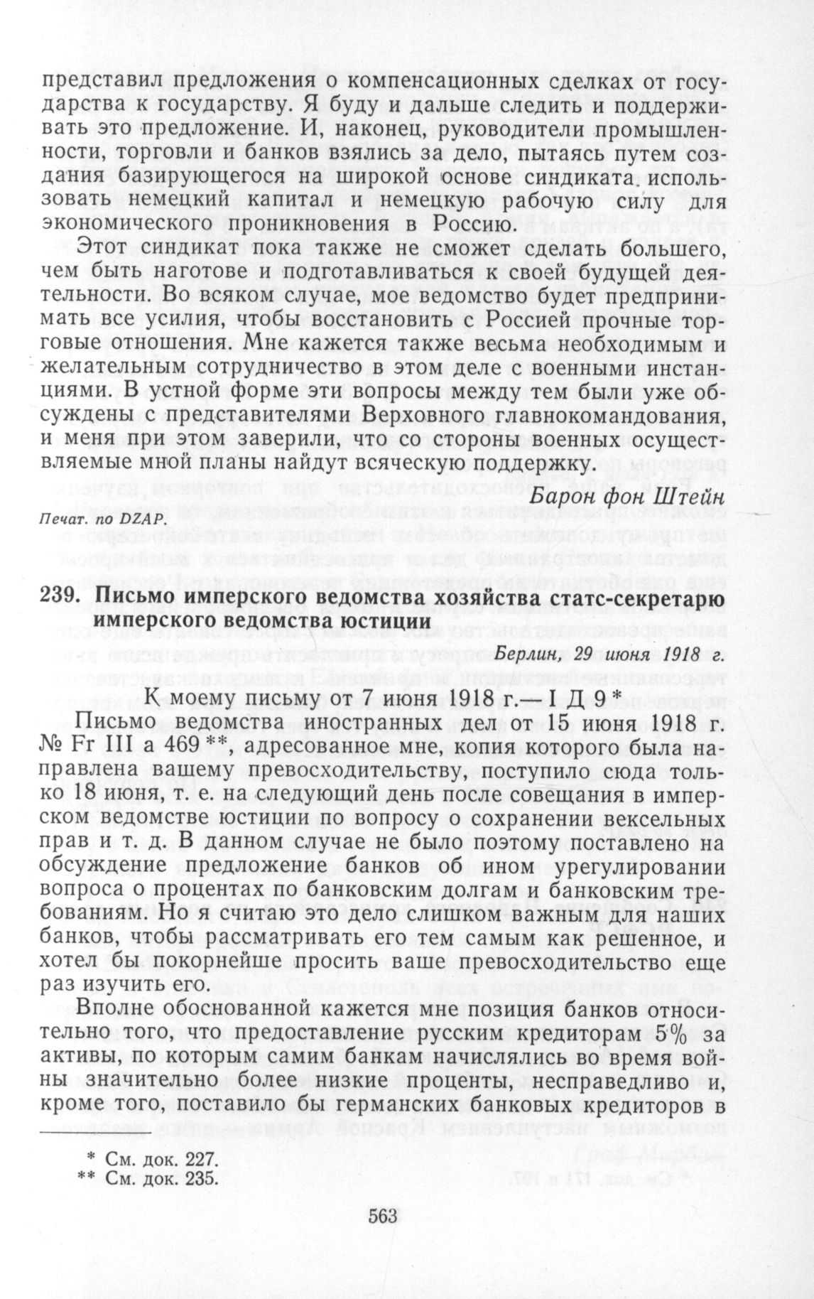 Письмо имперского ведомства хозяйства статс-секретарю имперского ведомства юстиции. Берлин, 29 июня 1918 г. // Печат. пo DZAP.