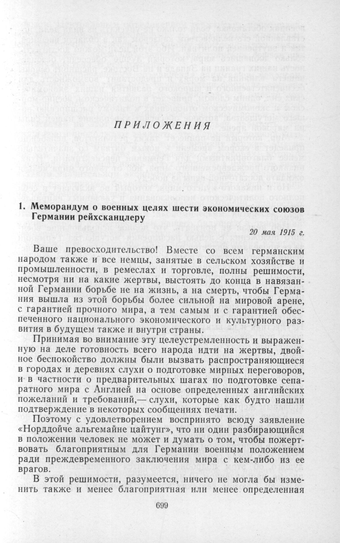 Меморандум о военных целях шести экономических союзов Германии рейхсканцлеру. 20 мая 1915 г. // Печат. пo DZAP.; «Alldeuische Blotter» № 52, 23 декабря 1916 г.