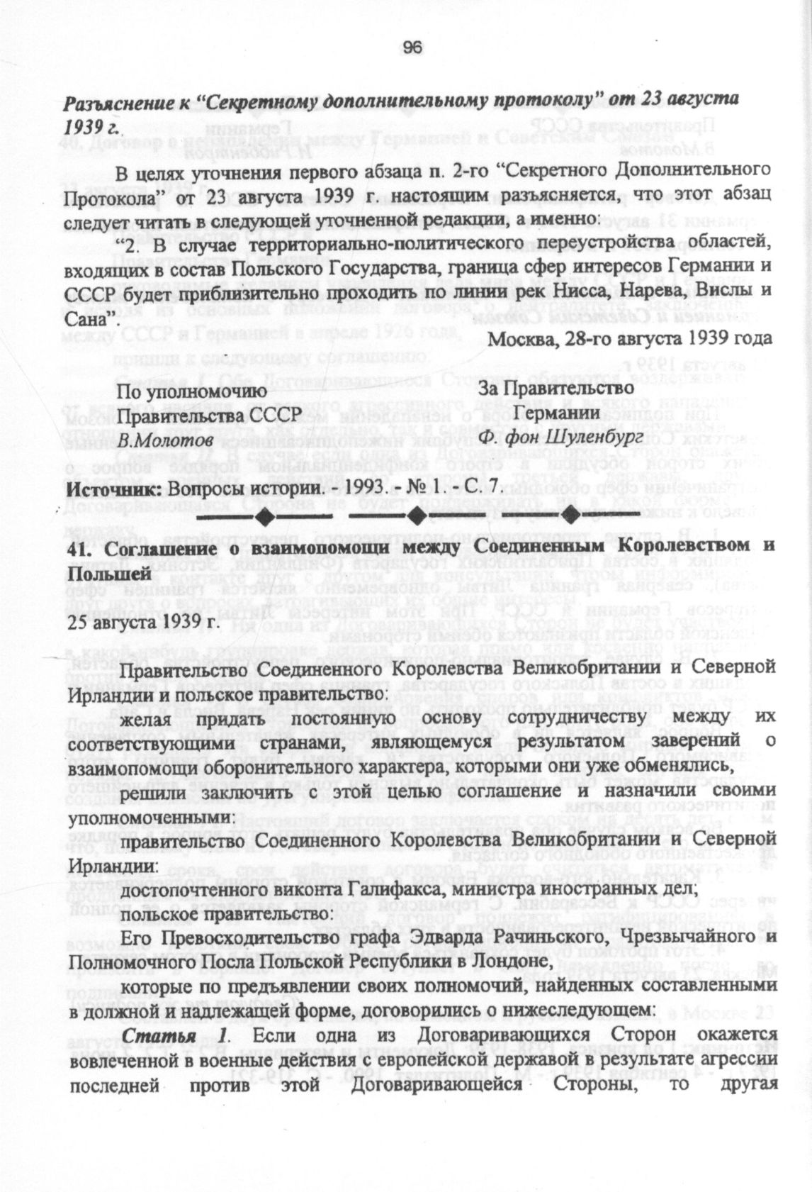 Соглашение о взаимопомощи между Соединенным Королевством и Польшей. 25 августа 1939 г. // Год кризиса, 1938-1939: Документы и материалы В 2 т. Т.2. 2 июня 1939 г. - 4 сентября 1939 г,- М.. Политиздат, 1990. - С. 323-326.
