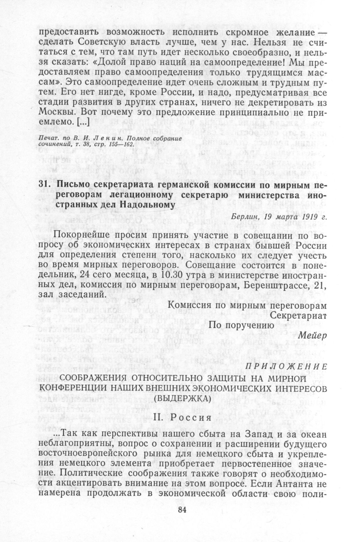 Письмо секретариата германской комиссии по мирным переговорам легационному секретарю министерства иностранных дел Надольному. Берлин, 19 марта 1919 г.
