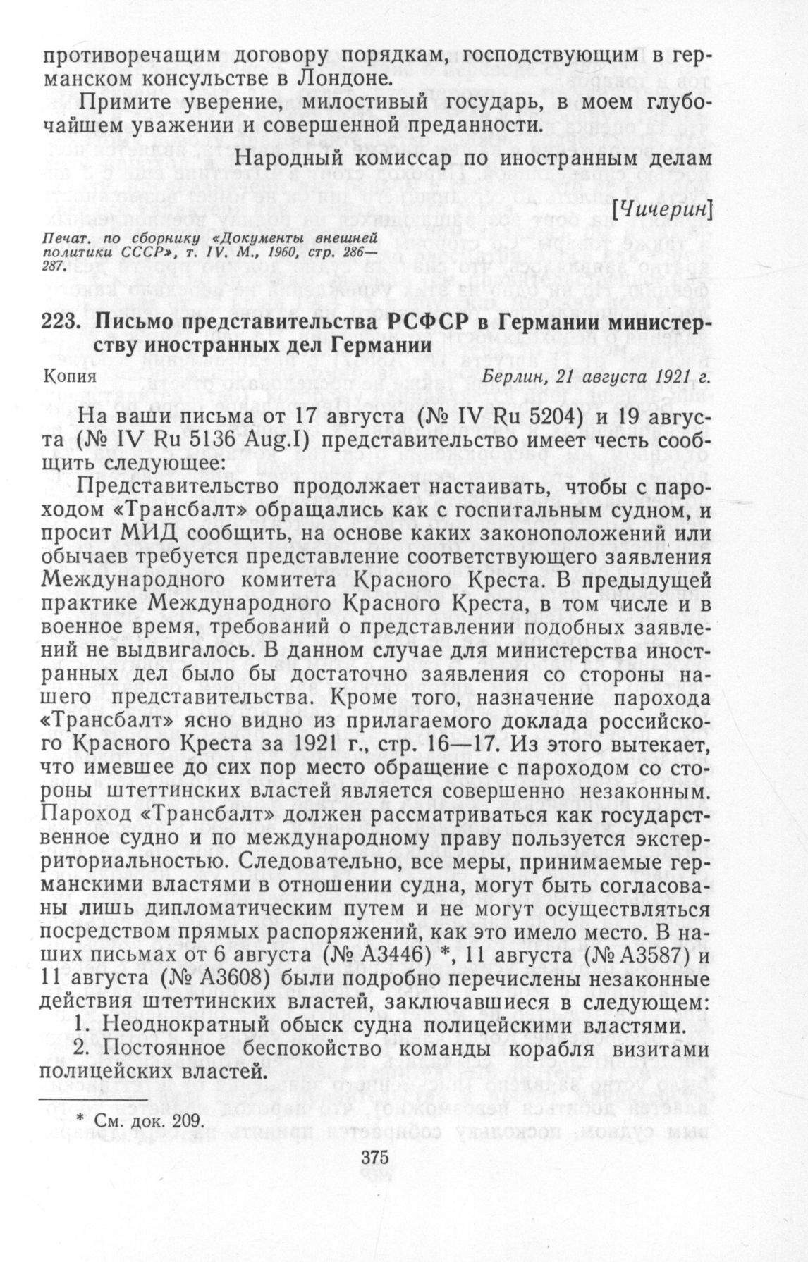 Письмо представительства РСФСР в Германии министерству иностранных дел Германии. Берлин, 21 августа 1921 г.