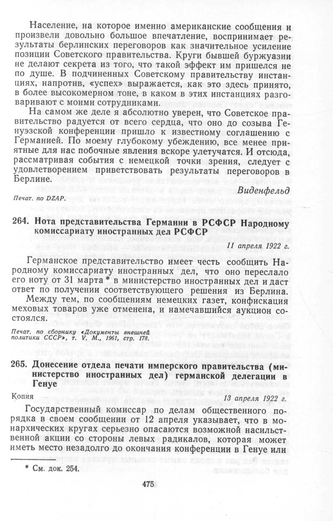 Донесение отдела печати имперского правительства (министерство иностранных дел) германской делегации в Генуе. 13 апреля 1922 г. // Печат. пo DZAP.
