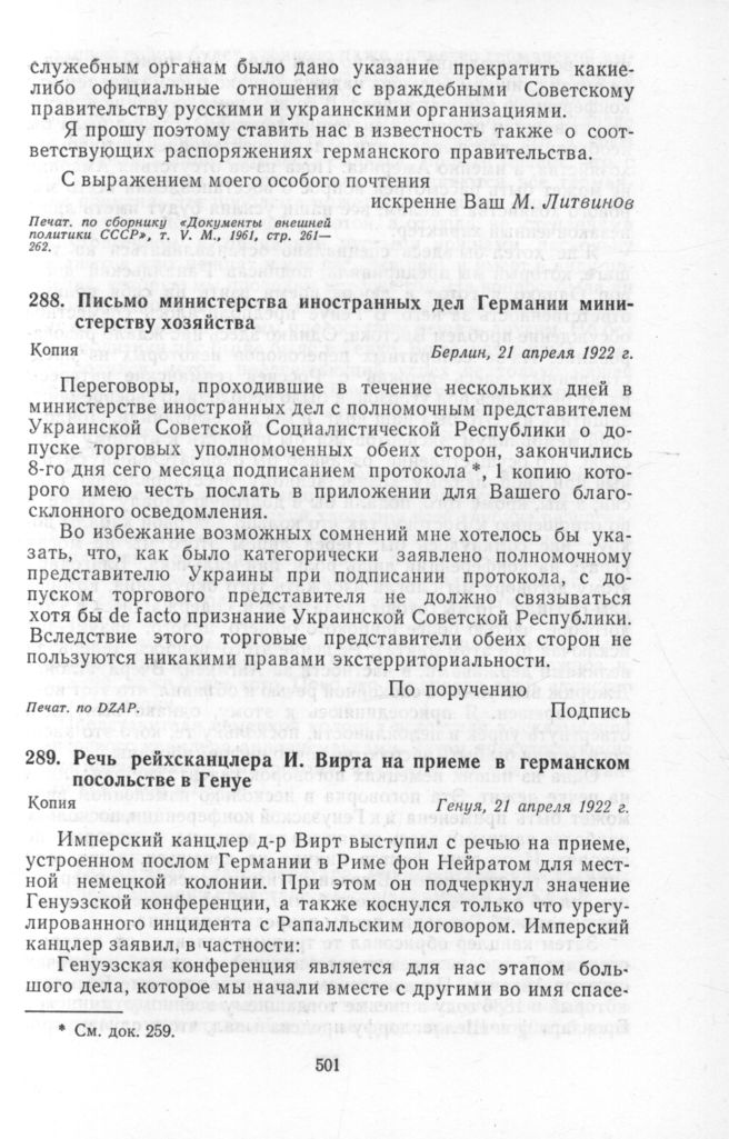 Речь рейхсканцлера И. Вирта на приеме в германском посольстве в Генуе. Генуя, 21 апреля 1922 г. // Печат. пo DZAP.