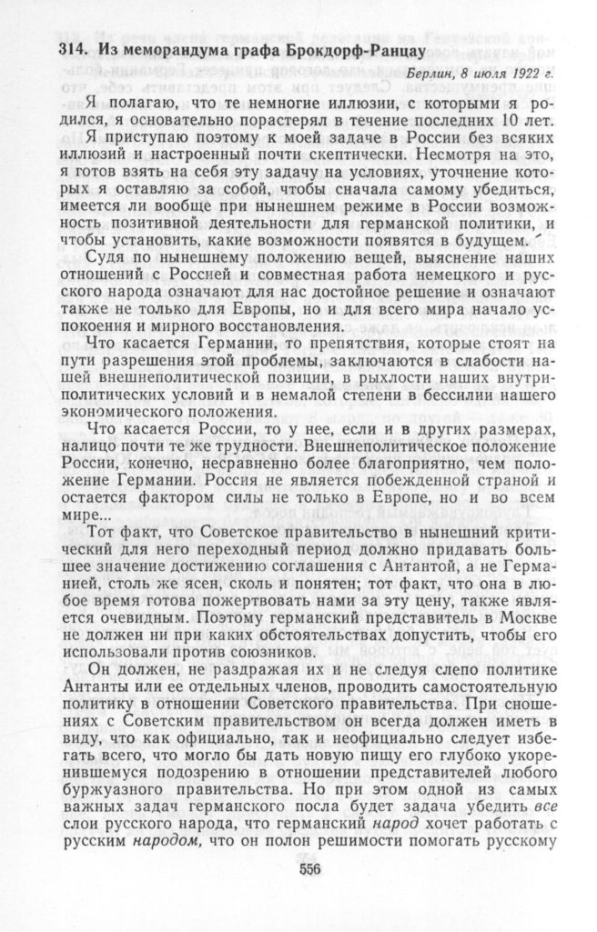 Из меморандума графа Брокдорф-Ранцау. Берлин, 8 июля 1922 г. // «Forschungen zur Osteuropaischen Geschichte», Bd. 2. Berlin, 1955, S. 329—331.