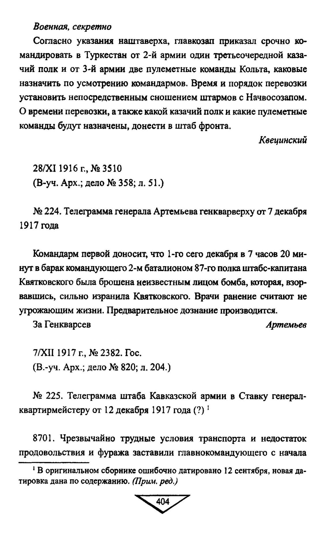 Телеграмма генерала Артемьева генкварверху от 7 декабря 1917 года // В.-уч. Арх.; дело № 820; л. 204.