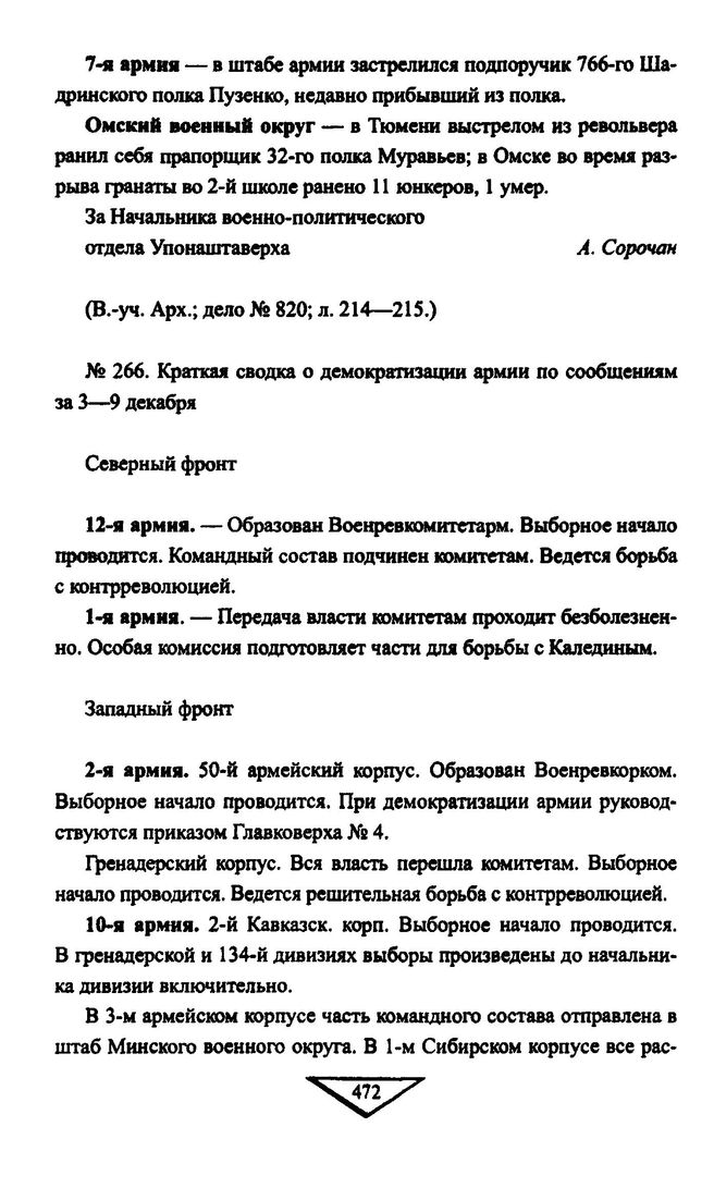 Краткая сводка о демократизации армии по сообщениям за 3—9 декабря // В.-уч. Арх.; дело № 820; л. 216.
