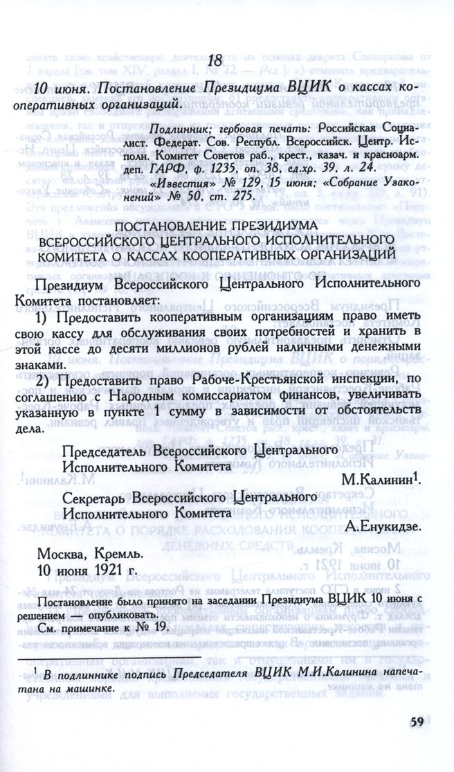 10 июня.Постановление Президиума ВЦИК о кассах кооперативных организаций // Подлинник; гербовая печать: Российская Социалист. Федерат. Сов. Республ. Всероссийск. Центр. Исполн. Комитет Советов раб., крест., казач. и красноарм. деп. ГА РФ, ф. 1235, oп. 38, ед.хр. 39, л. 24. «Известия» № 129, 15 июня; «Собрание Узаконений» № 50, cт. 275.