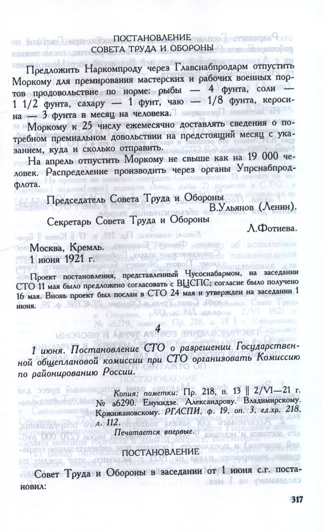 1 июня. Постановление СТО о разрешении Государственной общеплановой комиссии при СТО организовать Комиссию по районированию России // Копия; пометки: Пр. 218, п. 13 || 2/VI—21 г. № а6290. Енукидзе. Александрову. Владимирскому. Кржижановскому. РГАСПИ, ф. 19, oп. 3, ед.хр. 218, л. 112. Печатается впервые.