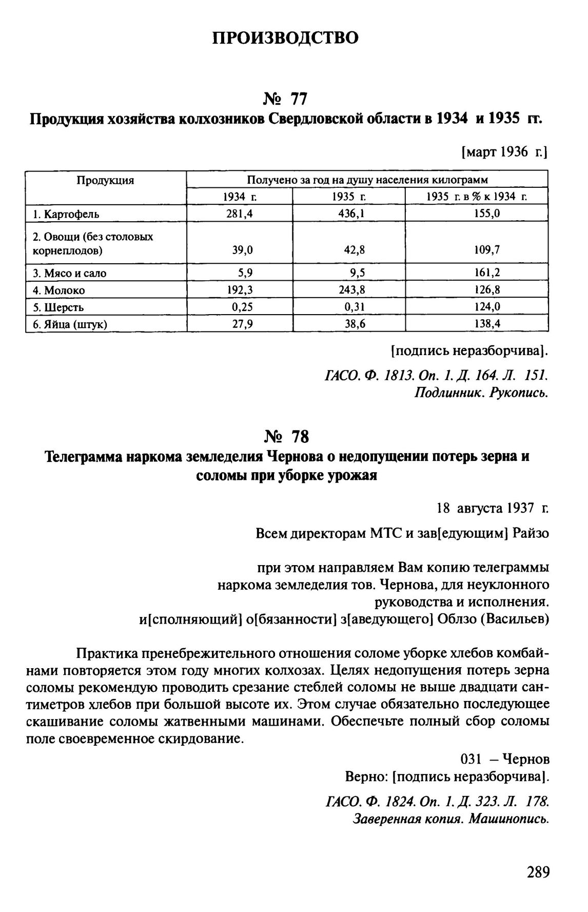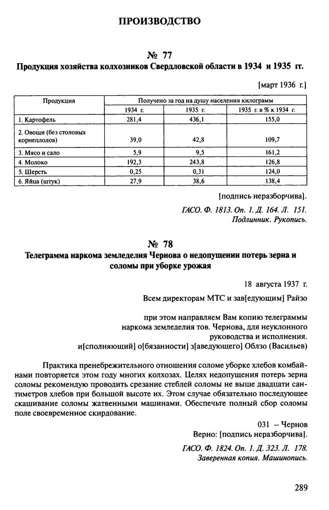 Продукция хозяйства колхозников Свердловской области в 1934 и 1935 гг. [Март 1936 г.]