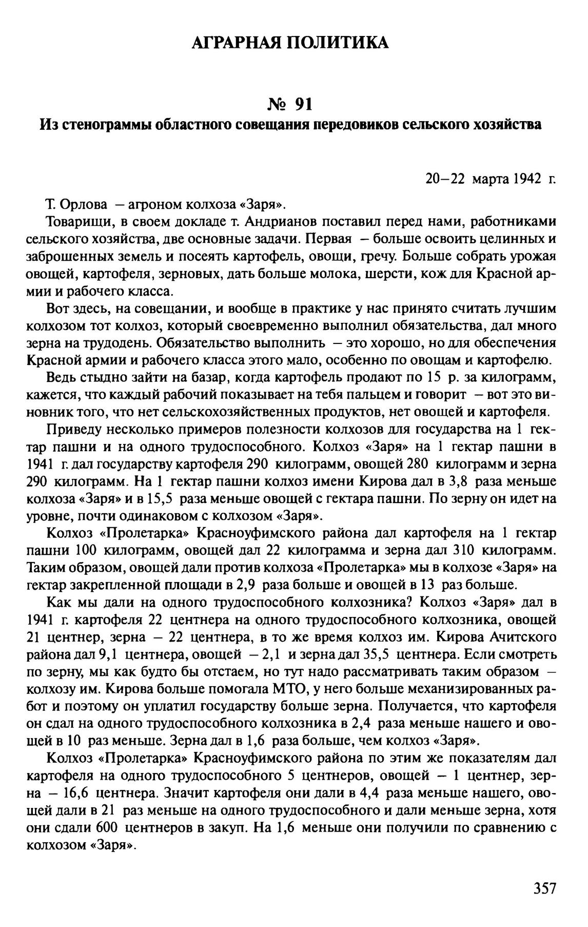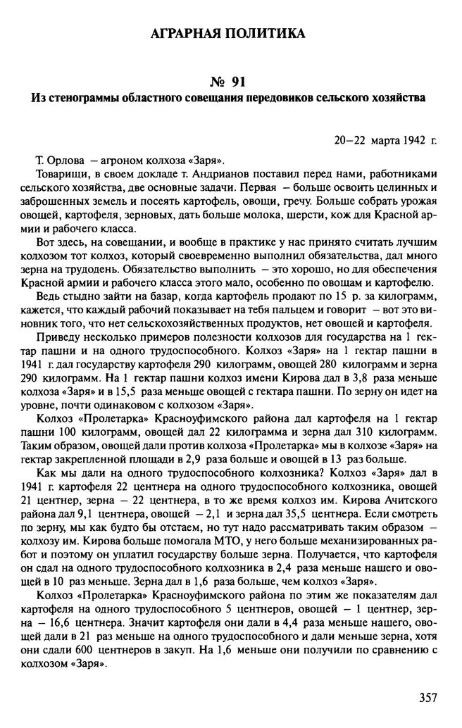 Из стенограммы областного совещания передовиков сельского хозяйства. 20-22 марта 1942 г.