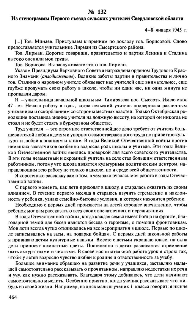 Из стенограммы Первого съезда сельских учителей Свердловской области. 4-8 января 1945 г. // ГАСО. Ф. 233. Oп. 3. Д. 32. Л. 35, 35 об., 36, 36 об., 37, 37 об., 38 об., 39, 39 об., 40, 40 об., 41, 41 об., 42, 42 об., 53, 53 об., 54, 54 об., 55, 55 об., 72, 72 об., 73. Подлинник. Машинопись.