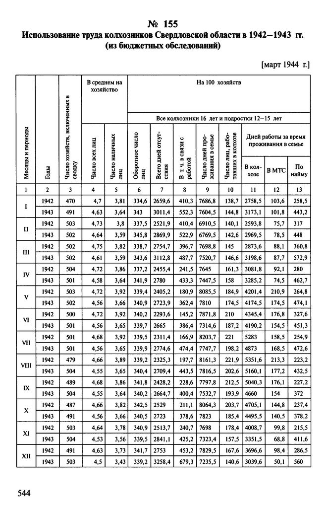 Использование труда колхозников Свердловской области в 1942—1943 гг. (из бюджетных обследований). [Март 1944 г.]