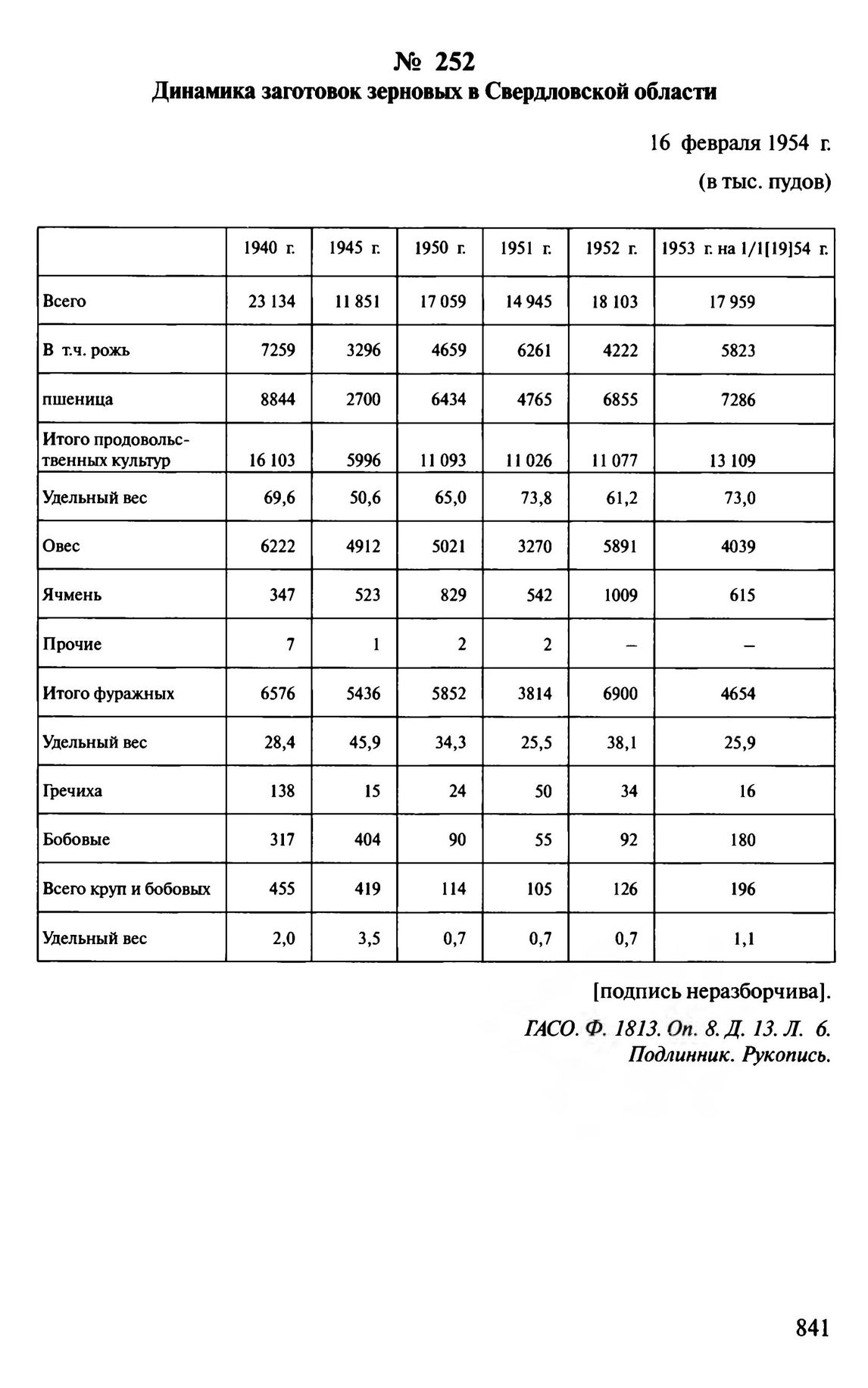 Динамика заготовок зерновых в Свердловской области. 16 февраля 1954 г.