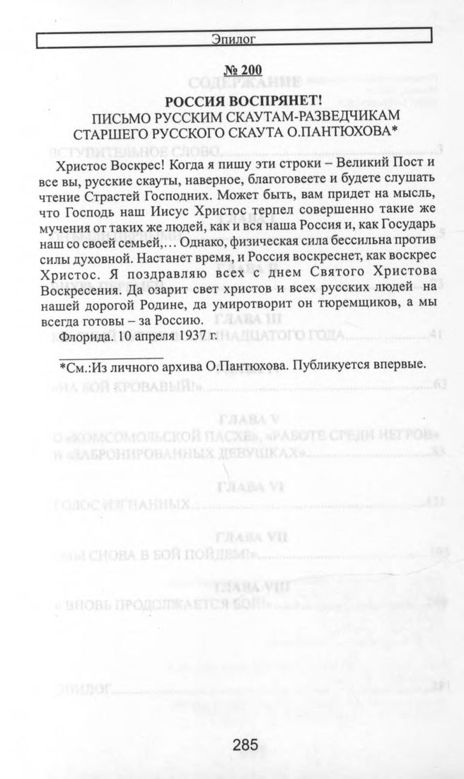 Россия воспрянет!. Письмо русским скаутам-разведчикам старшего русского скаута О.Пантюхова // См.: Из личного архива О.Пантюхова. Публикуется впервые.