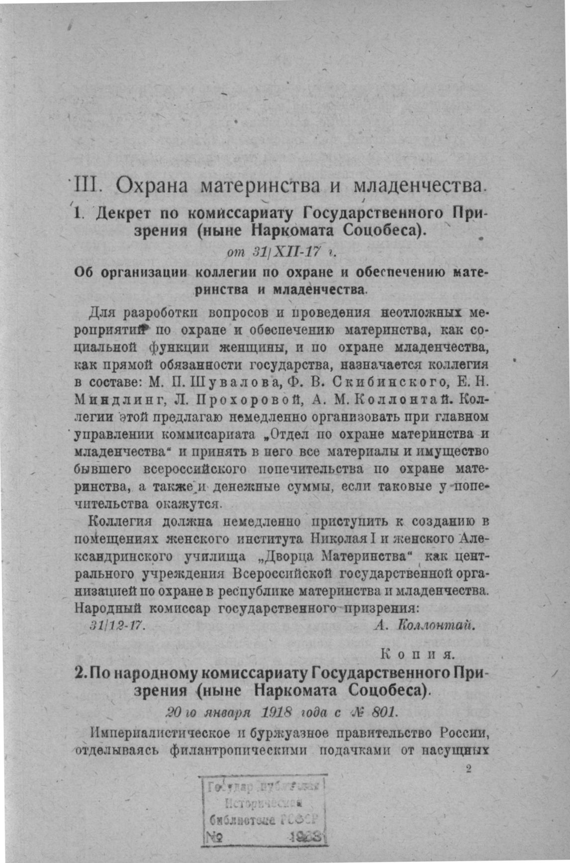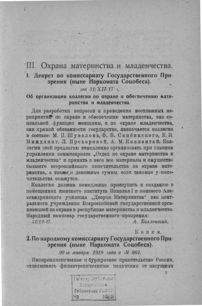 По народному комиссариату Государственного Призрения (ныне Наркомата Соцобеса). 20 го января 1918 года