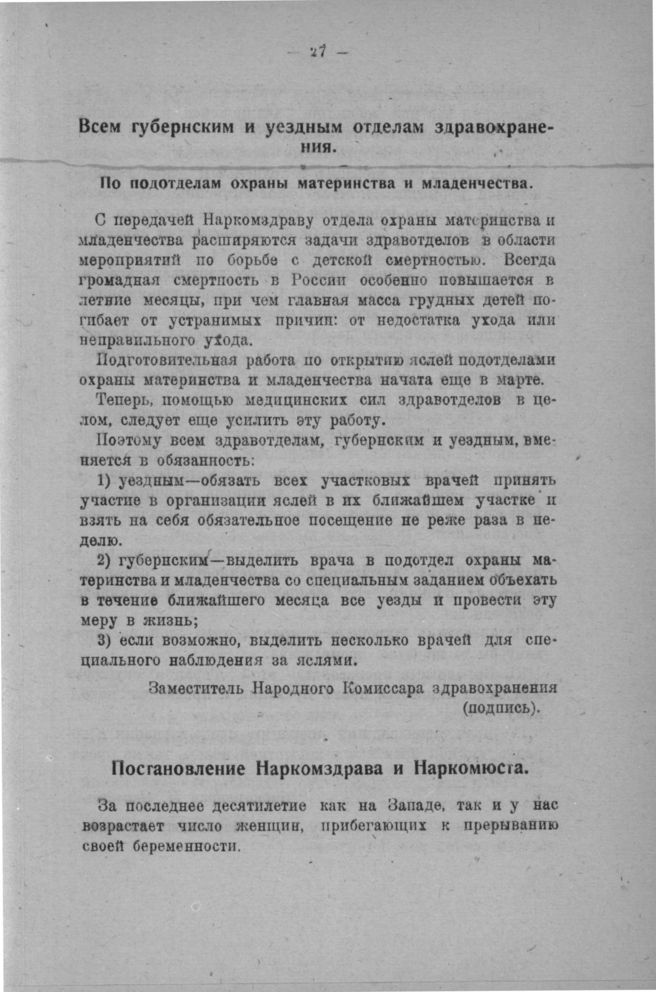 Постановление Наркомздрава и Наркомюста. [О прерывании беременности]