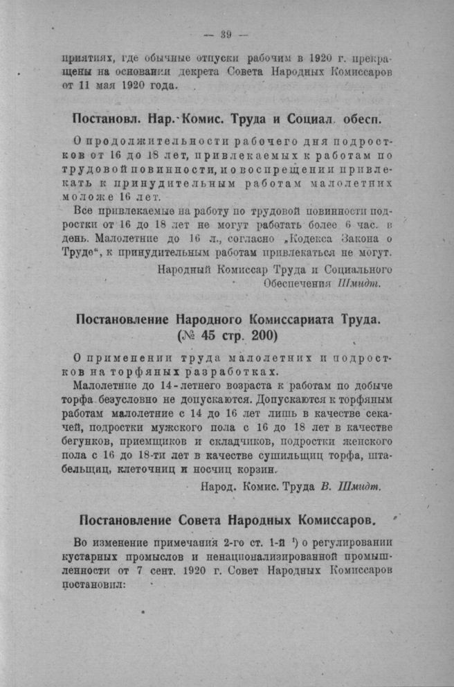 Постановление Совета Народных Комиссаров. [Работа несовершеннолетни...