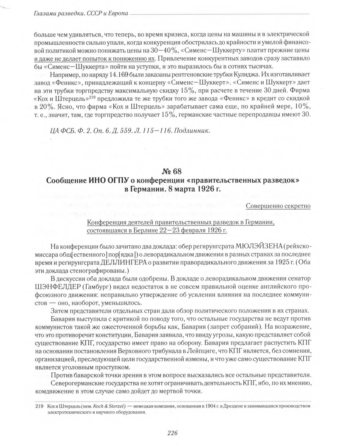 Сообщение ИНО ОГПУ о конференции «правительственных разведок» в Германии. 8 марта 1926 г.