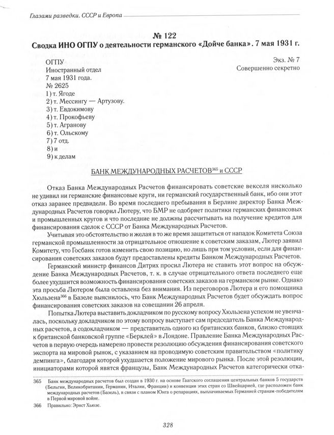 Сводка ИНО ОГПУ о деятельности германского «Дойче банка». 7 мая 1931 г.