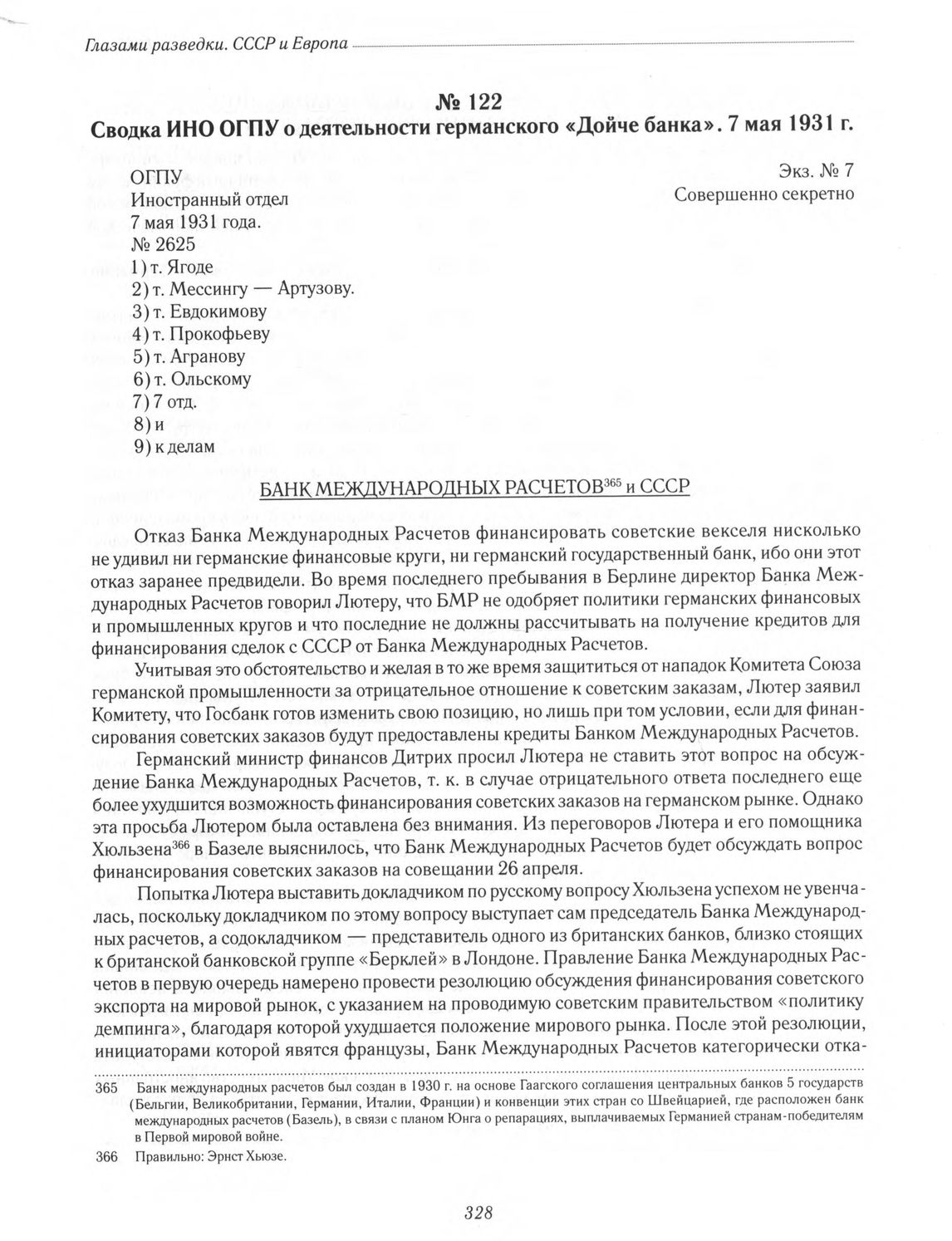 Сводка ИНО ОГПУ о деятельности германского «Дойче банка». 7 мая 1931 г. // ЦА ФСБ РФ. Ф. 2. Оп. 9. Д. 861. Л. 7-8. Копия.