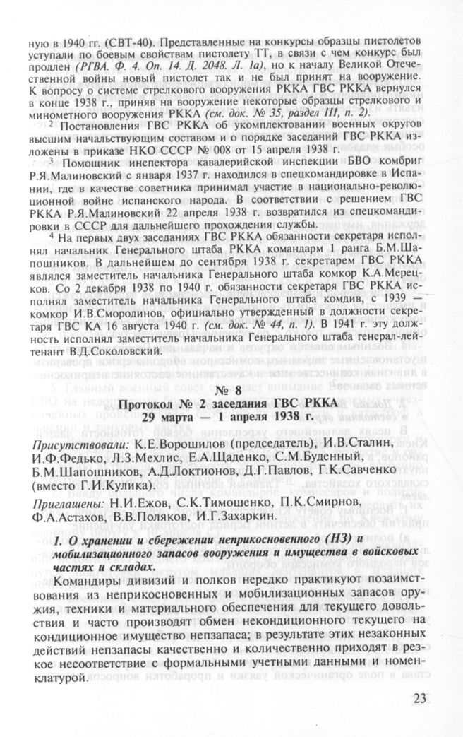 Протокол № 2 заседания ГВС РККА. 29 марта-1 апреля 1938 г. // РГВА. Ф. 4. Оп. 18. Д. 46. Л. 5-15. Подлинник.