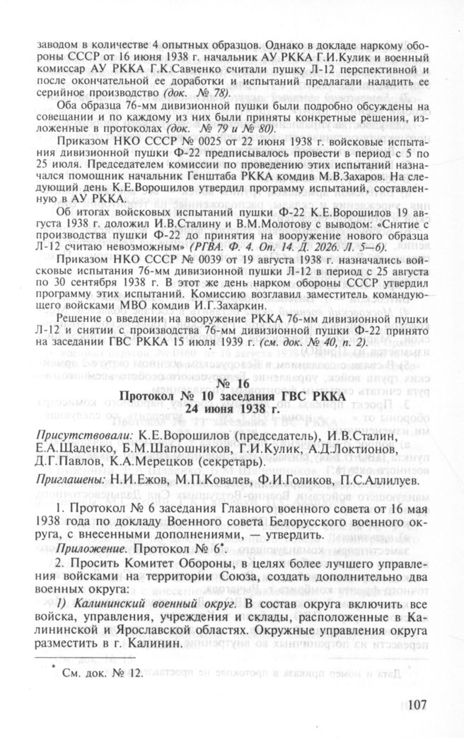 Протокол № 10 заседания ГВС РККА. 24 июня 1938 г. // РГВА. Ф. 4. Оп. 18. Д. 46. Л. 138—141. Подлинник.