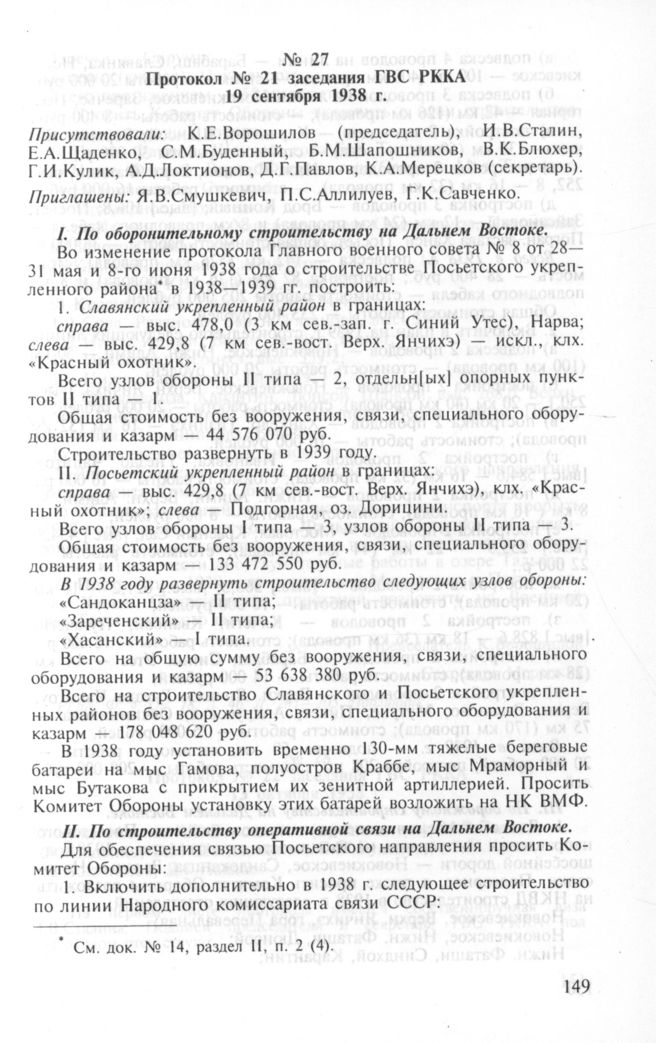 Протокол № 21 заседания ГВС РККА. 19 сентября 1938 г.