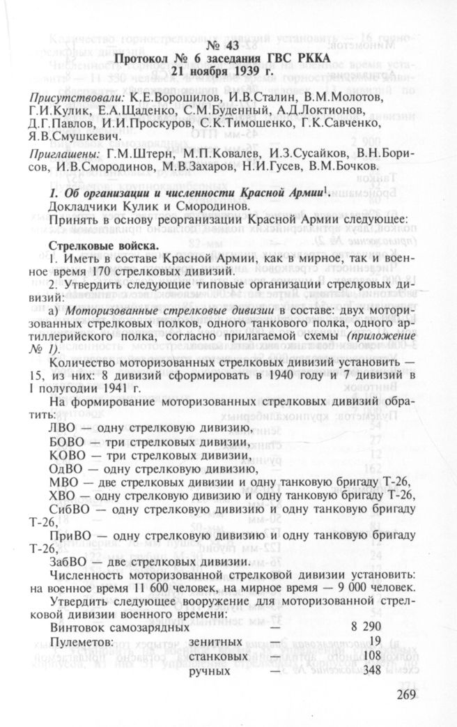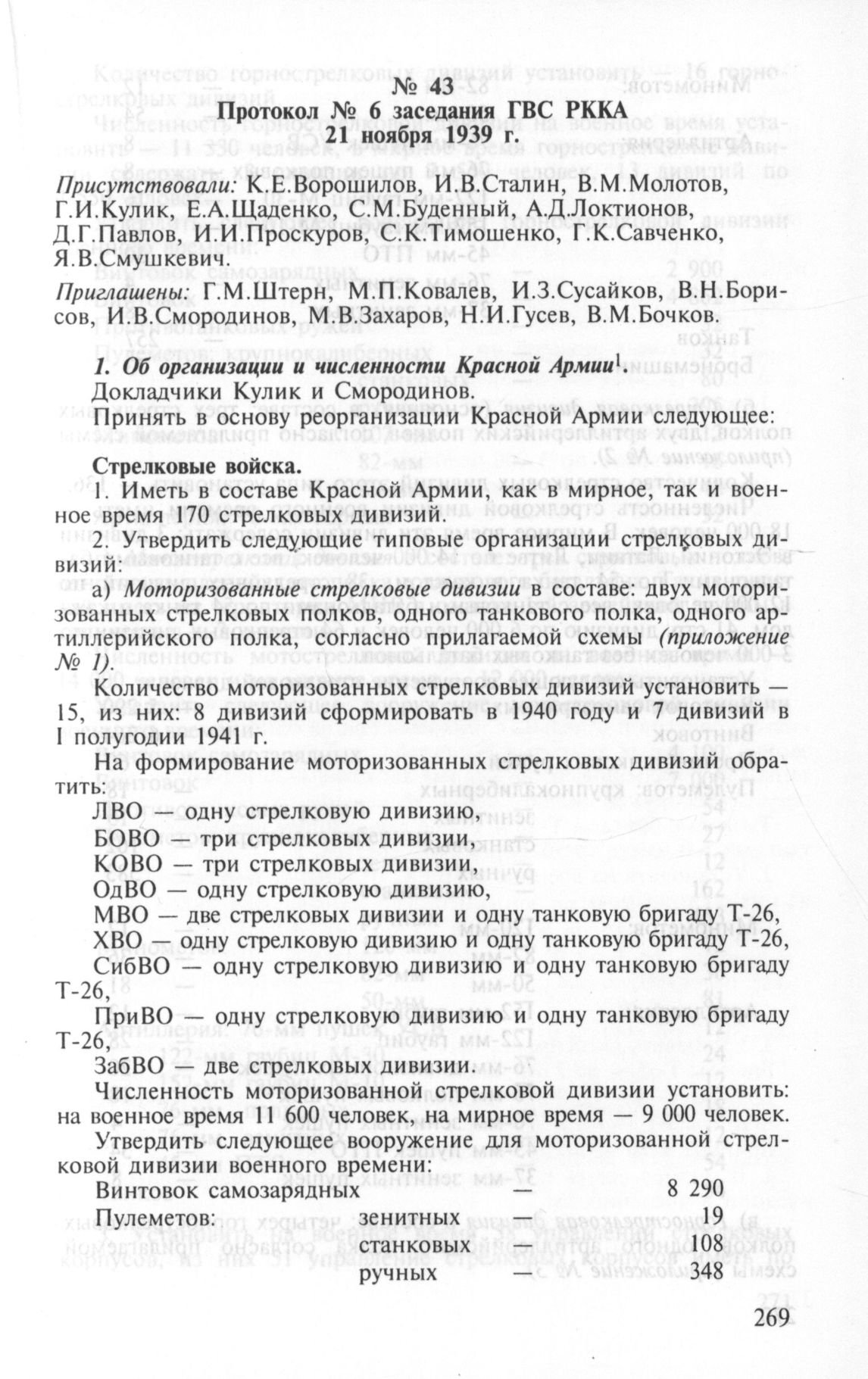 Протокол № 6 заседания ГВС РККА. 21 ноября 1939 г.