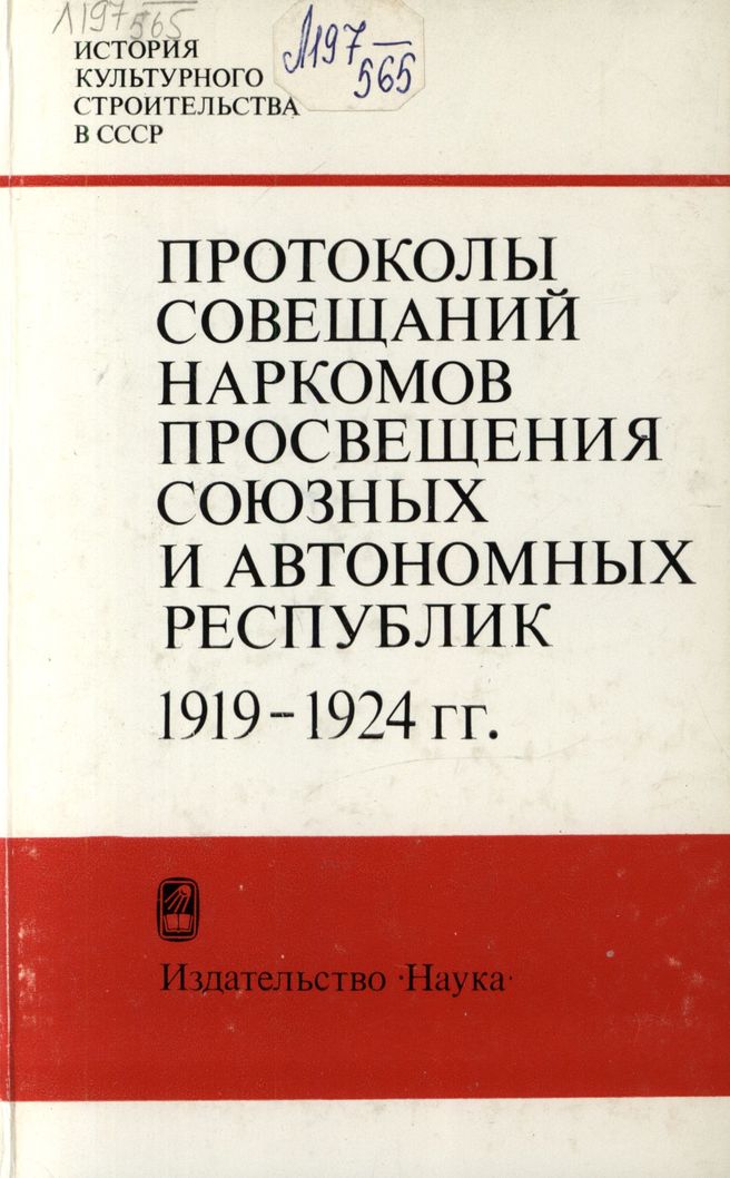 | Название издания | Протоколы совещаний наркомов просвещения союзных и автономных республик. 1919-1924 гг. (1) |