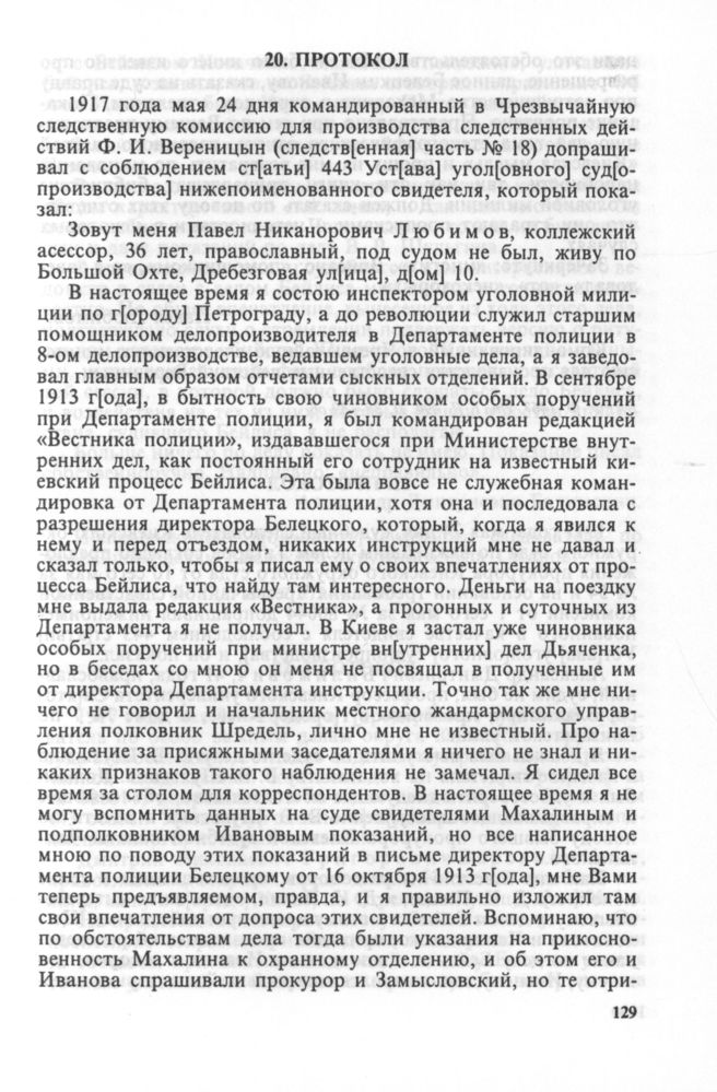 Дело Менделя Бейлиса: Материалы Чрезвычайной следственной комиссии Временного правительства о судебном процессе 1913 г. по обвинению в ритуальном убийстве. — СПб.: Изд-во «Дмитрий Буланин», 1999.