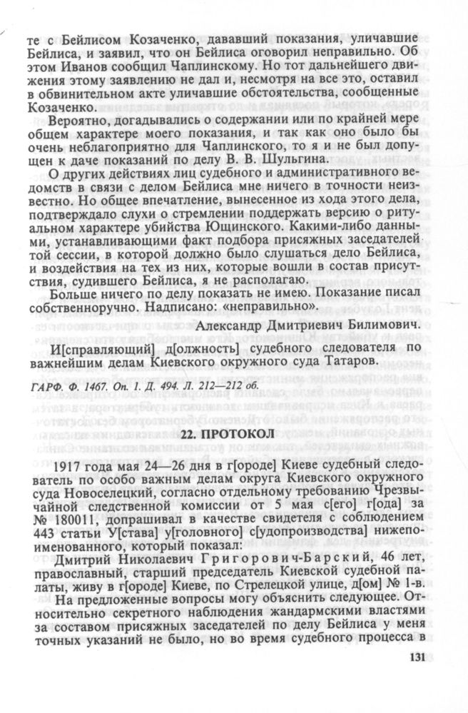 Дело Менделя Бейлиса: Материалы Чрезвычайной следственной комиссии Временного правительства о судебном процессе 1913 г. по обвинению в ритуальном убийстве. — СПб.: Изд-во «Дмитрий Буланин», 1999.