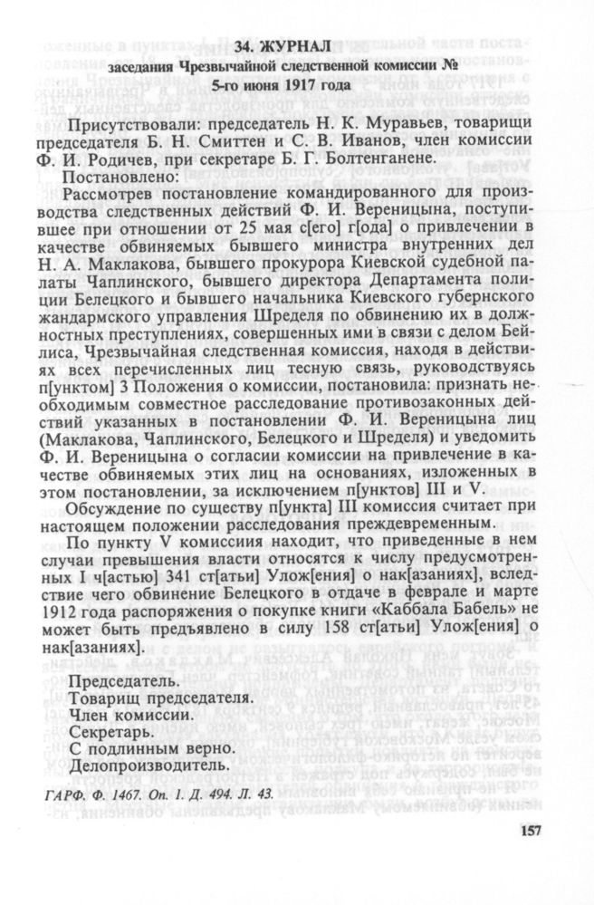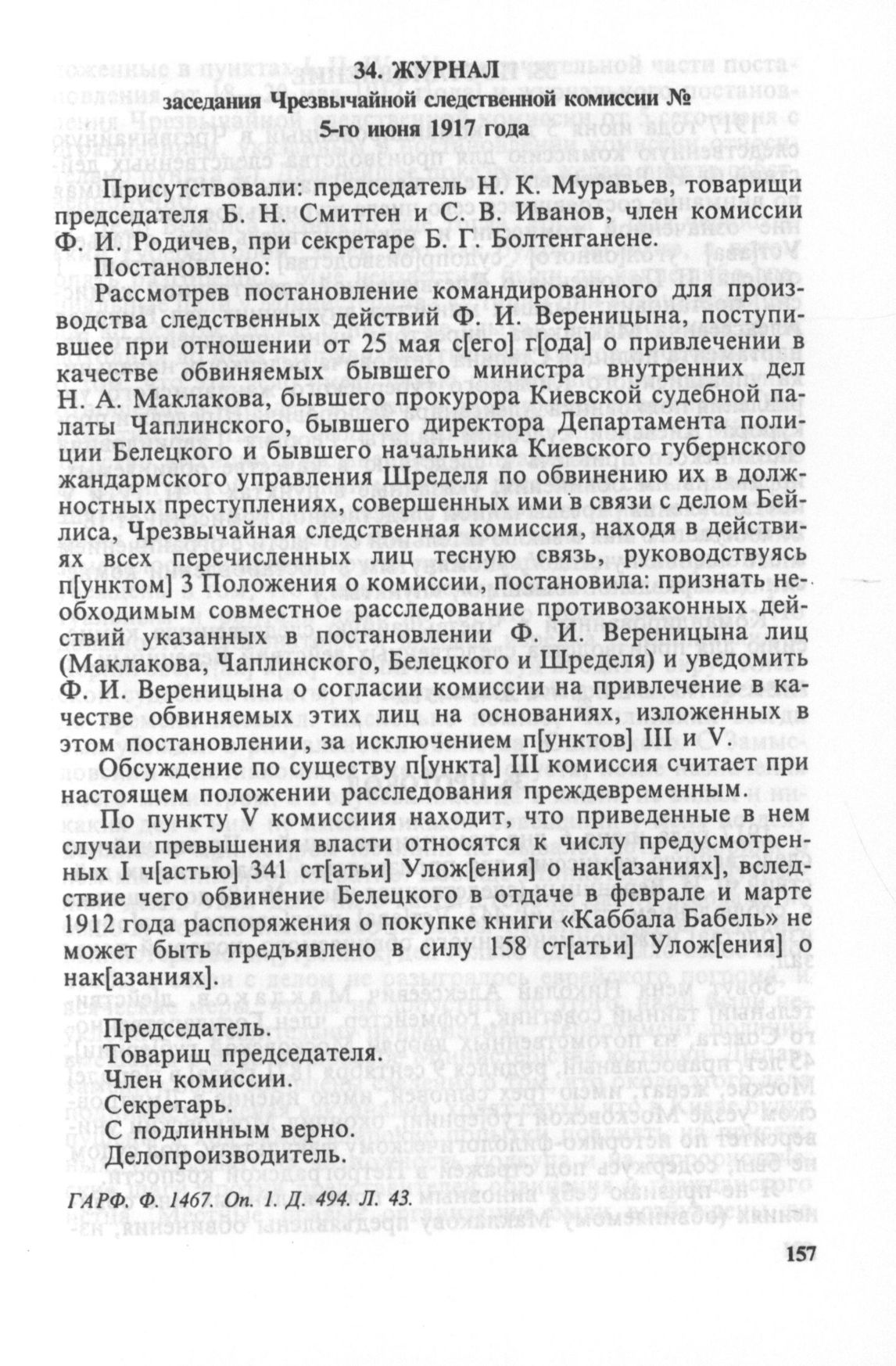 Журнал заседания Чрезвычайной следственной комиссии № 5 июня 1917 г. // ГАРФ. Ф. 1467. Oп. 1. Д. 494. Л. 43.