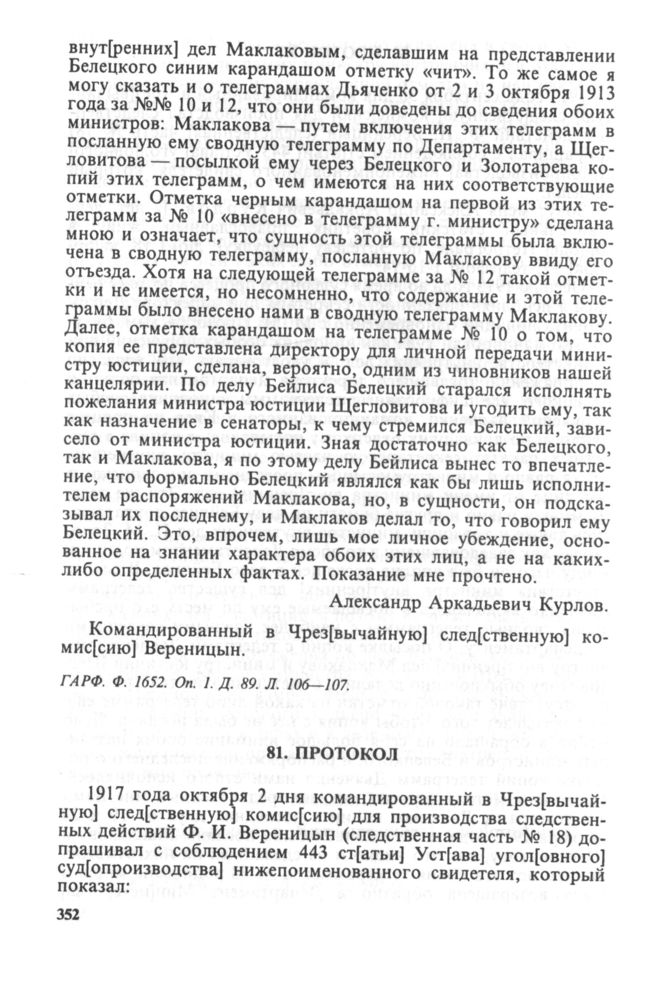 Протокол допроса А.С. Зарудного 2 октября 1917 г. // ГАРФ. Ф. 1652. Oп. 1. Д. 89. Л. 110-110об.