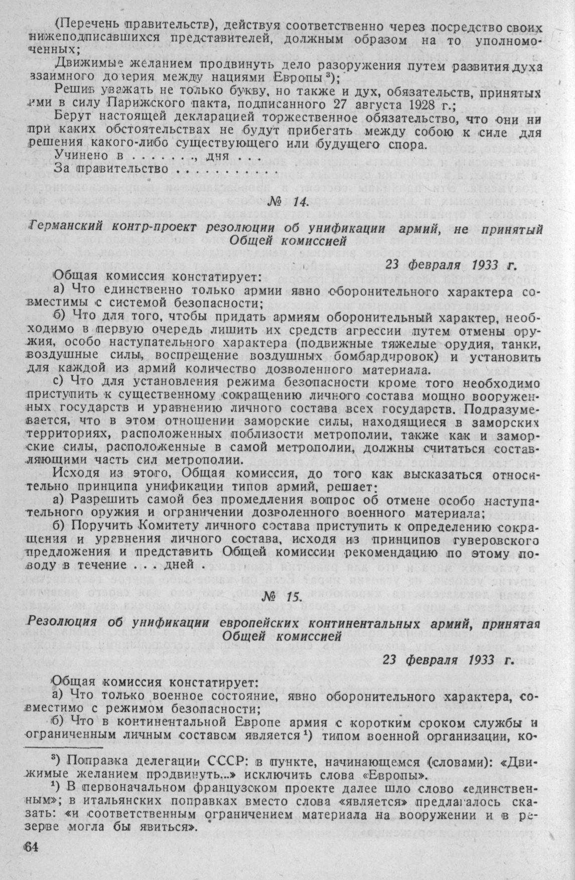 Резолюция об унификации европейских континентальных армий, принятая Общей комиссией 23 февраля 1933 г.