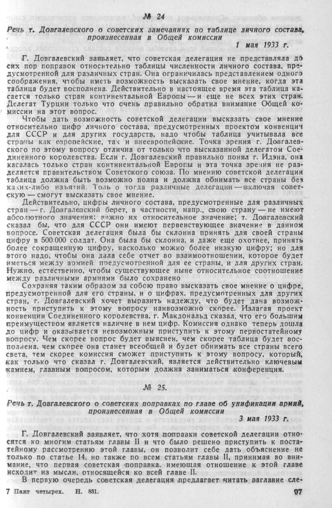 Речь т. Довгалевского о советских замечаниях по таблице личного состава, произнесенная в Общей комиссии 1 мая 1933 г.