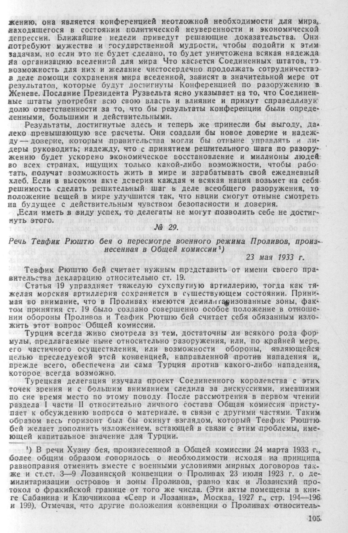 Речь Тевфик Рюштю бея о пересмотре военного режима Проливов, произнесенная в Общей комиссии 23 мая 1933 г.