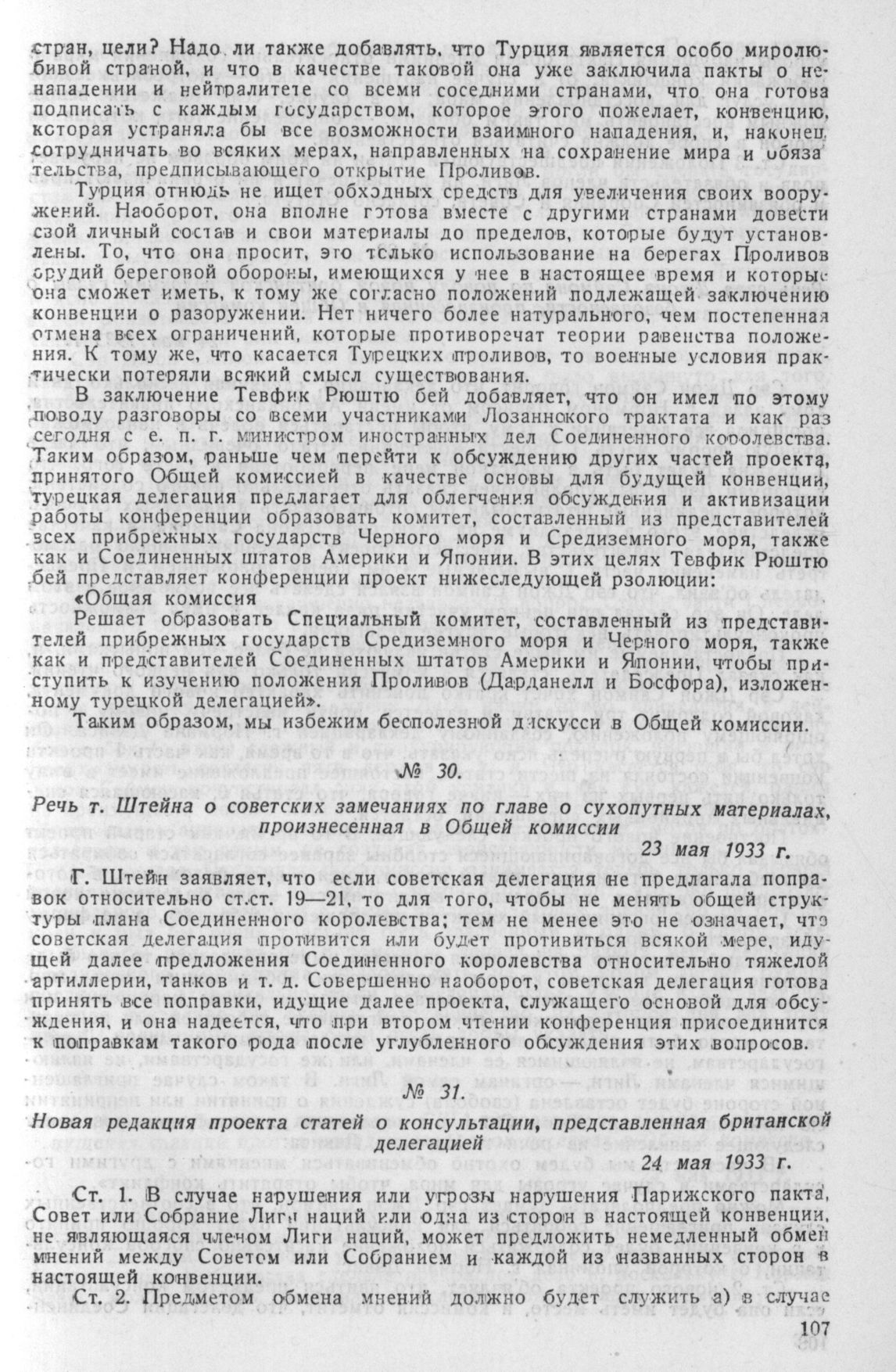 Речь т. Штейна о советских замечаниях по главе о сухопутных материалах, произнесенная в Общей комиссии 23 мая 1933 г.