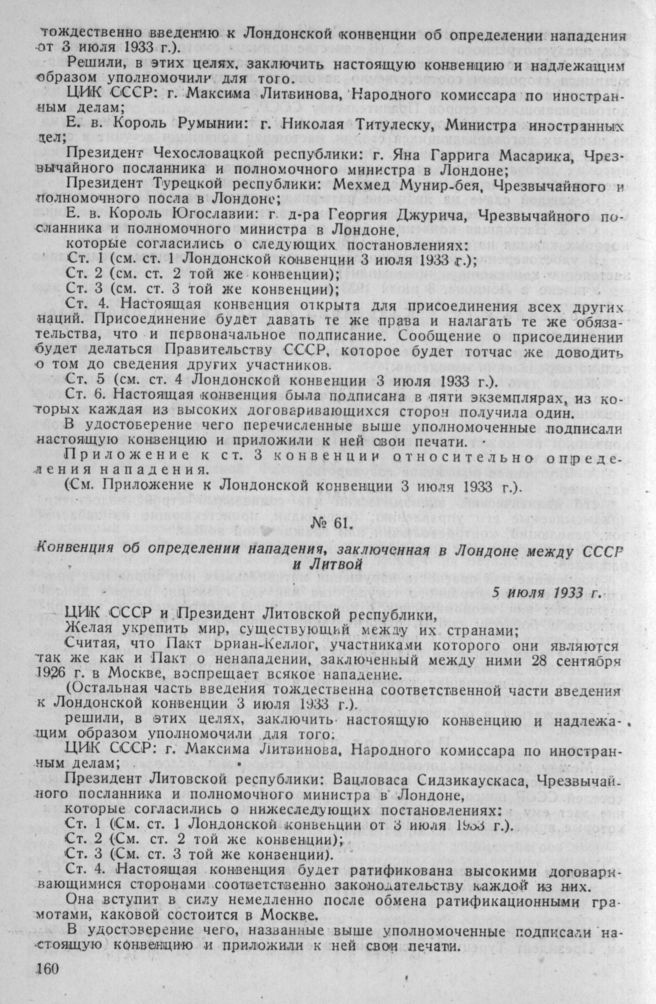 Конвенция об определении нападения, заключенная в Лондоне между СССР и Литвой 5 июля 1933 г.
