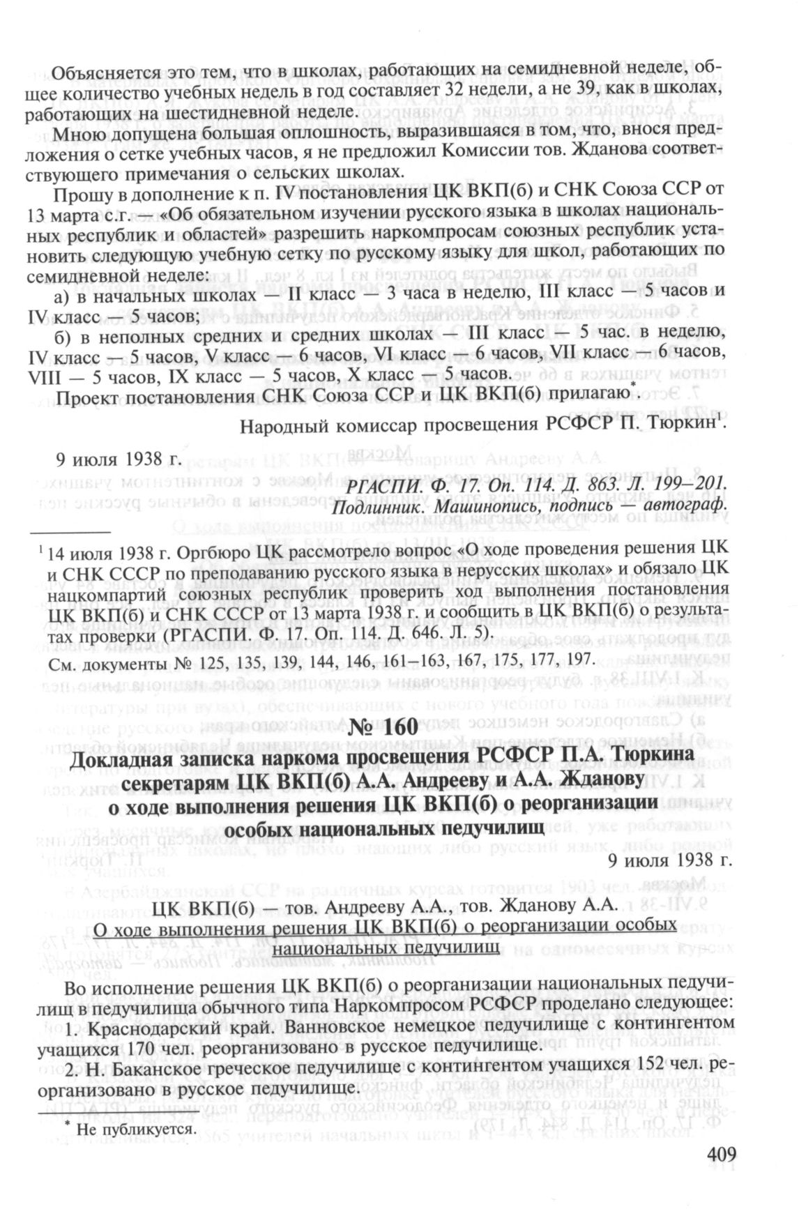 Докладная записка наркома просвещения РСФСР П.А. Тюркина секретарям ЦК ВКП(б) А.А. Андрееву и А.А. Жданову о ходе выполнения решения ЦК ВКП(б) о реорганизации особых национальных педучилищ. 9 июля 1938 г.