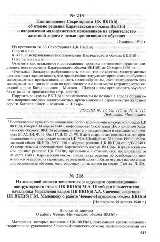 Из докладной записки заместителя заведующего организационно-инструкторского отдела ЦК ВКП(б) М.А. Шамберга и заместителя начальника Управления кадров ЦК ВКП(б) А.А. Савченко секретарю ЦК ВКП(б) Г.М. Маленкову о работе Чечено-Ингушского обкома ВКП(б). [Не позднее 19 апреля 1940 г.] // РГАСПИ. Ф. 17. Oп. 117. Д. 87. Л. 75, 87-90. Подлинник. Машинопись, подписи — автографы.