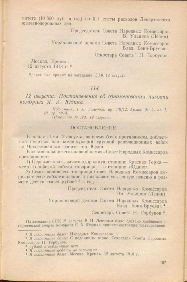 Главная Серия «Экономическая история. Документы, исследования, переводы» Декреты советской власти в 18 т. Декреты Советской власти. Т. III. 11 июля – 9 ноября 1918 г. Документы 12 августа. Постановление об ознаменовании памяти комбрига Я. А. Юдина