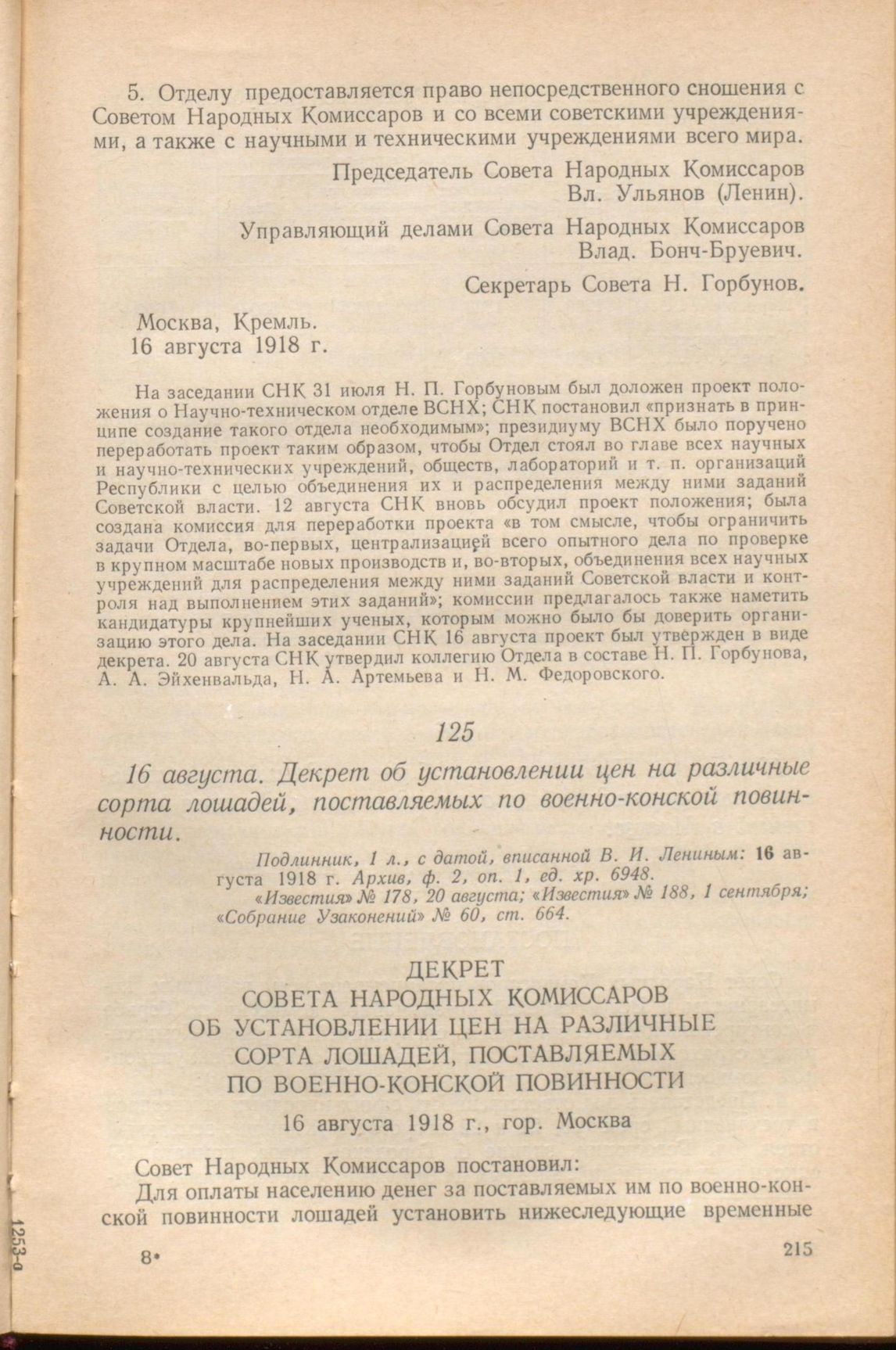 Главная Серия «Экономическая история. Документы, исследования, переводы» Декреты советской власти в 18 т. Декреты Советской власти. Т. III. 11 июля – 9 ноября 1918 г. Документы 16 августа. Декрет об установлении цен на различные сорта лошадей, ...