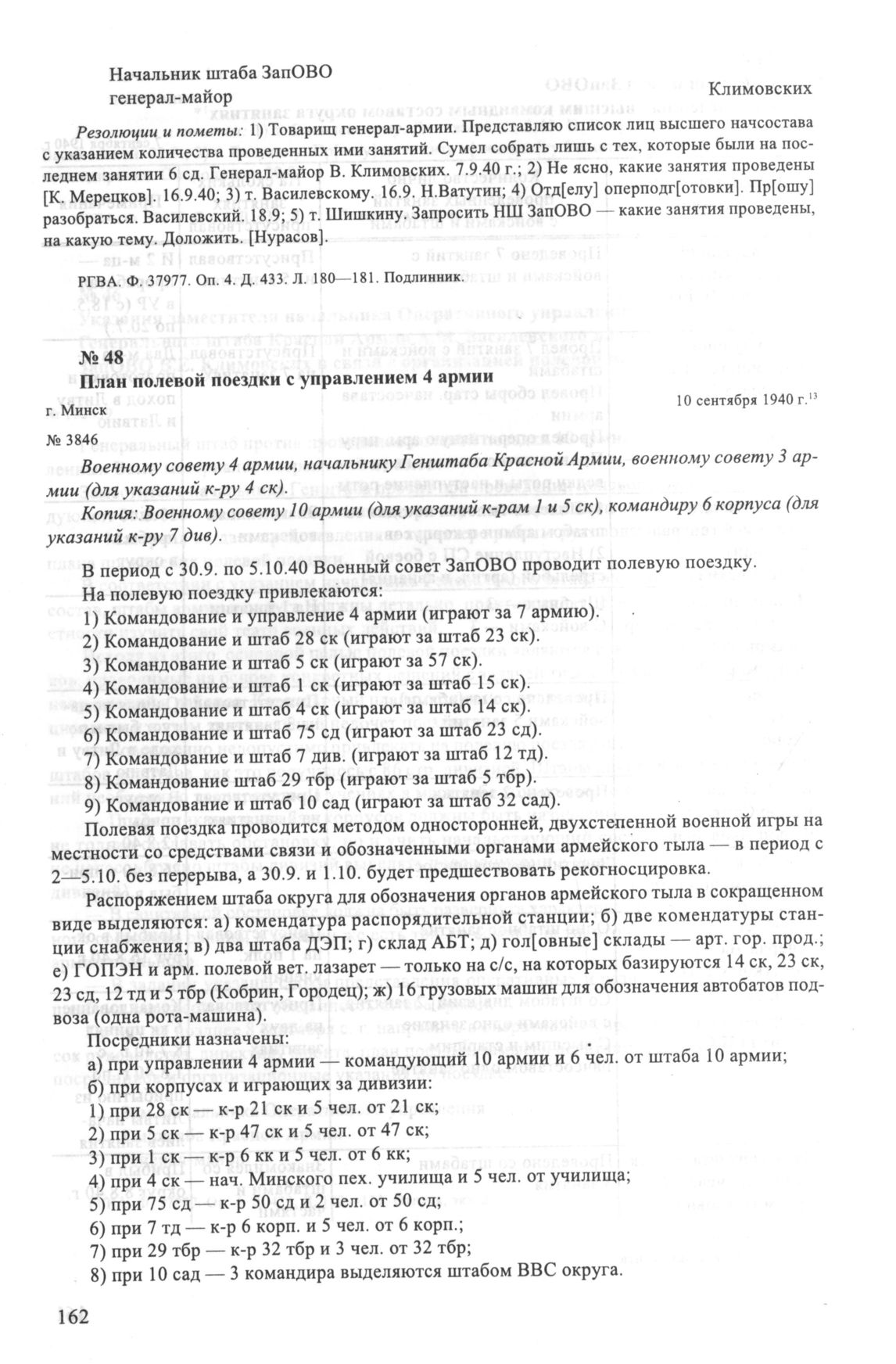 План полевой поездки с управлением 4 армии г. Минск .10 сентября 1940 г. // РГВА. Ф. 37977. Оп. 4. Д. 433. Л. 184-187. Подлинник.