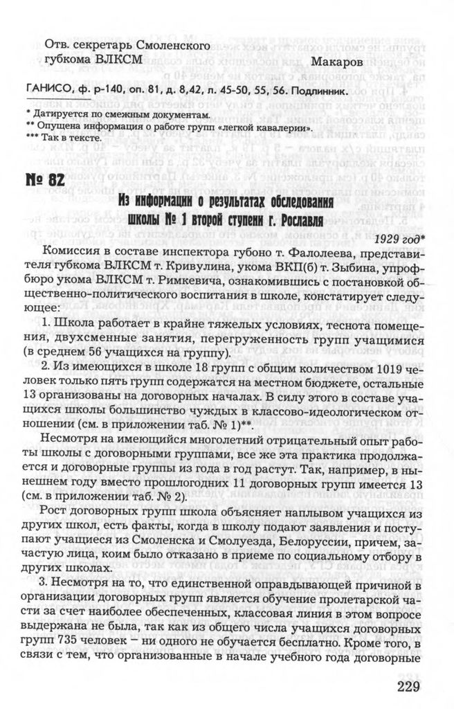 Из информации о результатах обследования школы № 1 второй ступени г. Рославля. 1929 год // ГАНИСО, Ф. Р-140, Оп.1, Д. 742, Л. 128-131. Копия.