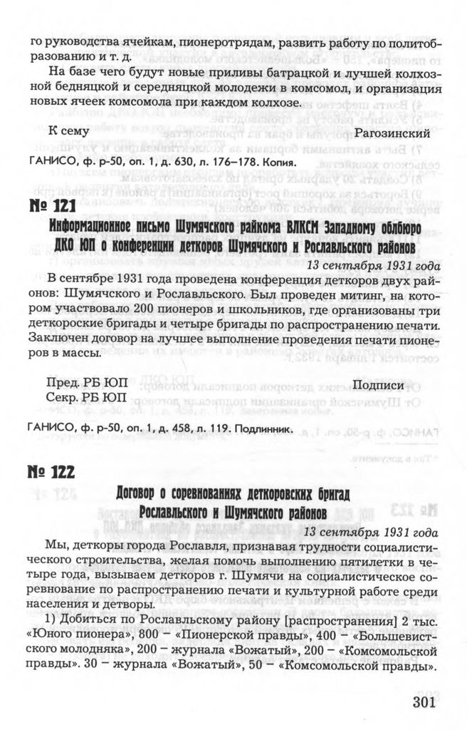 Информационное письмо Шумячского райкома ВЛКСМ Западному облбюро ДКО ЮП о конференции деткоров Шумячского и Рославльского районов. 13 сентября 1931 года // ГАНИСО, Ф. Р-50, Оп. 1, Д. 458, Л. 119. Подлинник.