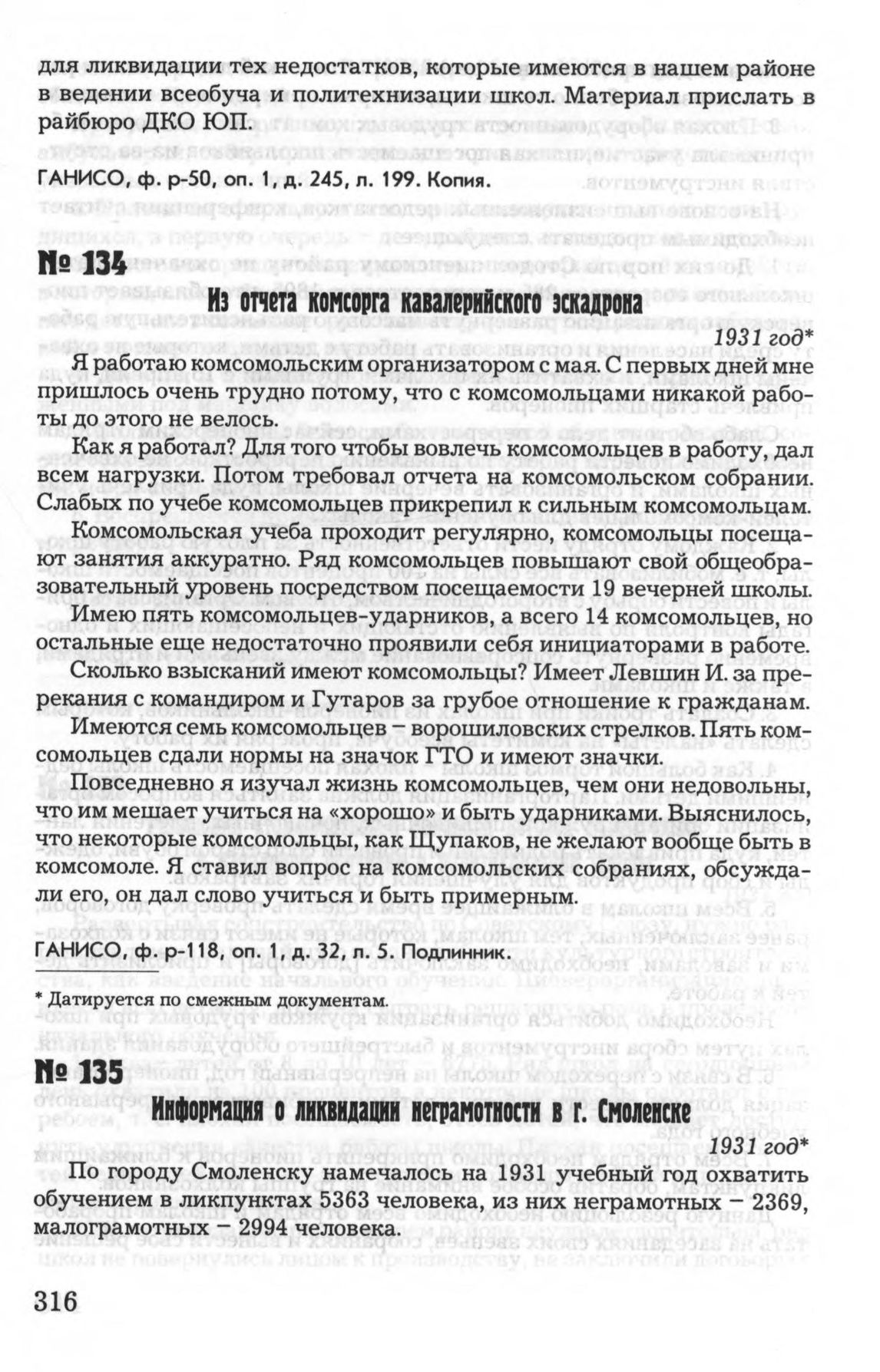 Из отчета комсорга кавалерийского эскадрона. 1931 год